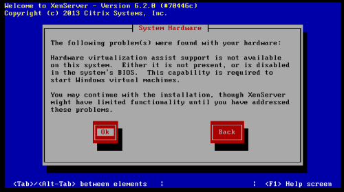 如果在接下來的步驟之中出現了如圖6所示的[System Hardware]頁面訊息,即表示您目前尚未將實體主機中的BIOS設定,啟用處理器進階設定中的虛擬化技術相關功能,當然也有可能是這部主機的處理器,根本沒有提供虛擬化技術的功能。盡管能可以點選[OK]繼續完成安裝,但後續將會有許多Windows類型的虛擬機器無法建立。