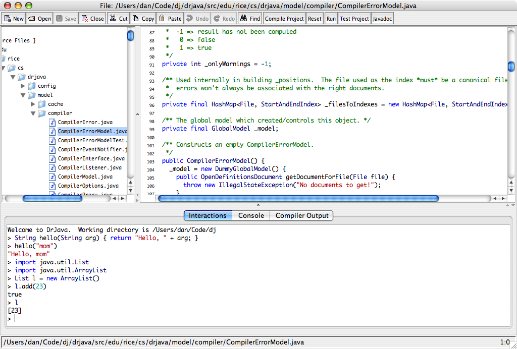 作為一個整合集成環境, DrJava理所當然地提供使用者編輯文檔的功能.