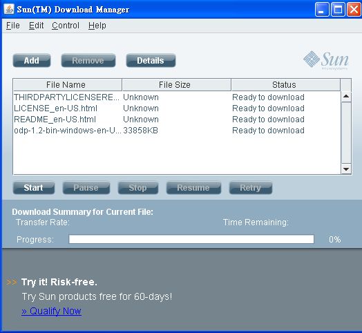 之後就開啟了我從前安裝過的 Sun 的下載管理員,