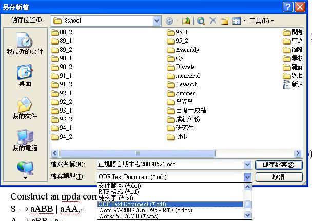也可以用「另存新檔」的方式將原本的 doc 檔存成 odt 檔,