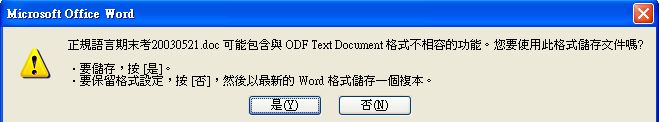 選擇 odt 檔來存時,雖然存取時都會出現一些警告的訊息,但終究是可以存取了。