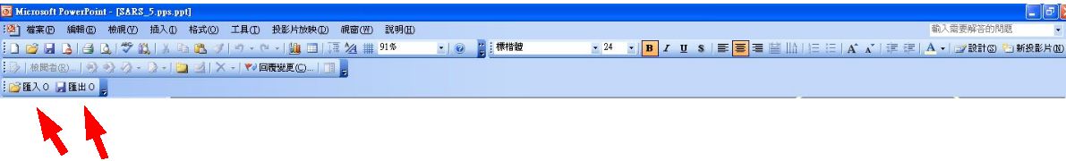 可是在 Excel 裡面雖然也有這兩個按鈕,但是我在 Office 2003 與 2007 裡面試用的結果卻發現:都無法正常使用,無論匯入還是匯出都會有程式執行錯誤,實在可惜。另外若是您用 Office 2007 的話,Powerpoint 與 Excel 的這兩個按鈕都是出現在「增益集」裡面,我找了好久才找到,我實在不熟悉 Office 2007 的界面。