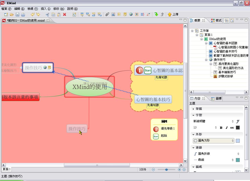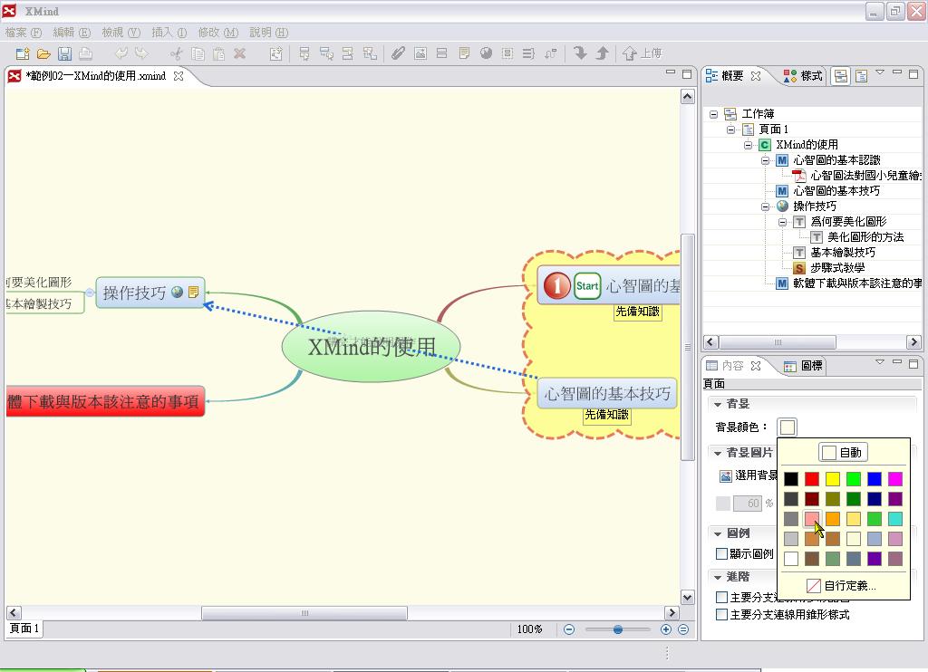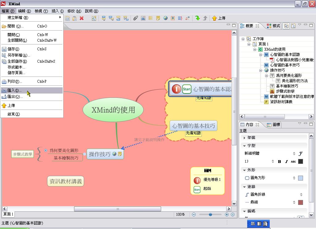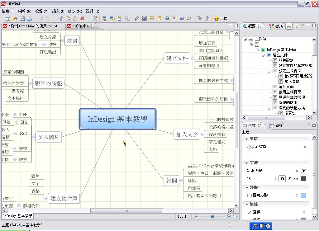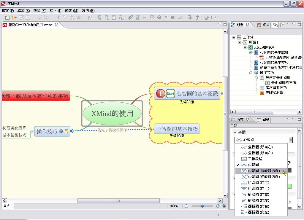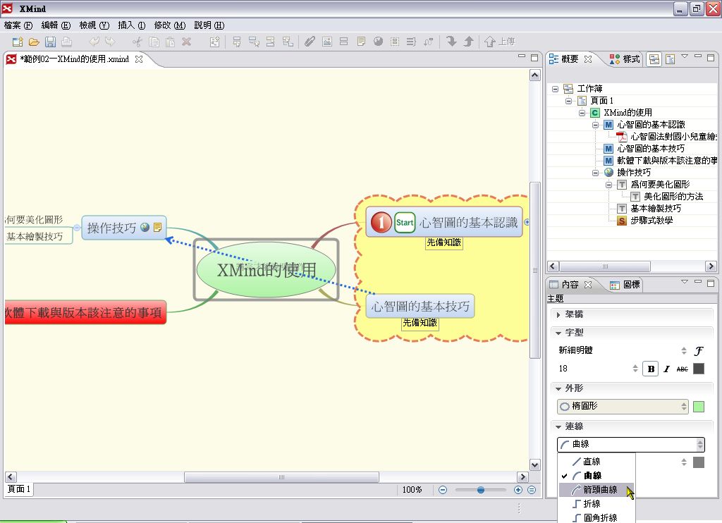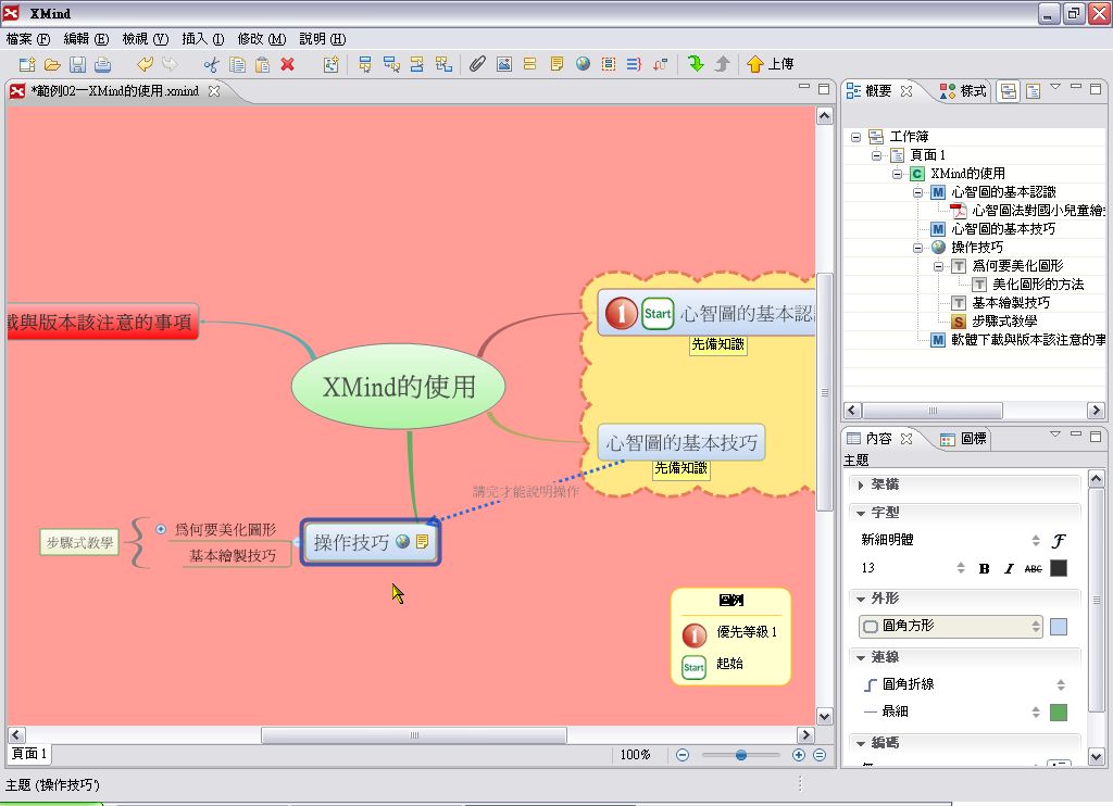 風格與樣式,主要是用來美化整體圖形或強調特定重點之用。這些都是 XMind 事先設計好的,簡單的幾個步驟,很快就能製作出活潑好看的心智圖!