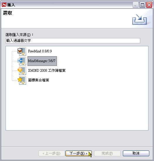 其他一些常見的心智圖軟體,如 FreeMind、MindManager 等的檔案格式,XMind 本身也支援,只是不能直接打開來編輯,必須以匯入的方式載入才能使用。若大家以前用這些軟體製作許多心智圖檔案,因某種緣故改用 XMind 時,可以不用煩惱這些檔案的轉移問題。