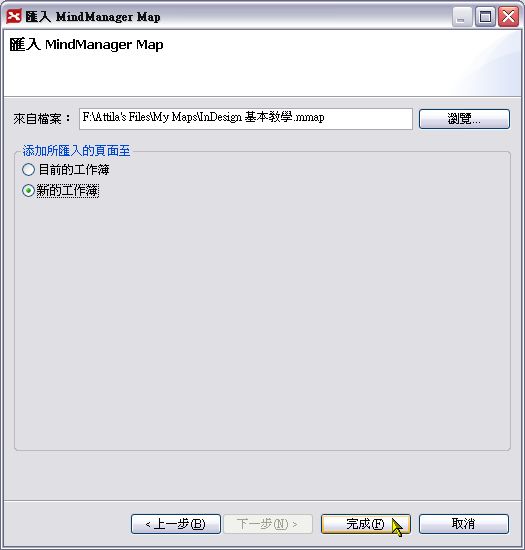 選擇匯入後要出現在哪個工作簿,一是到目前編輯中工作簿,一是到新開啟的工作簿內。選好後,按「完成」。