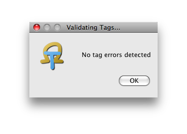 檢查結果如果完全正確,OmegaT 會提示「No tag errors detected」,這就表示特殊標籤已無任何錯誤。