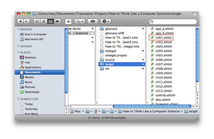 然後就可以在「target」資料夾中看到翻譯後的文檔。